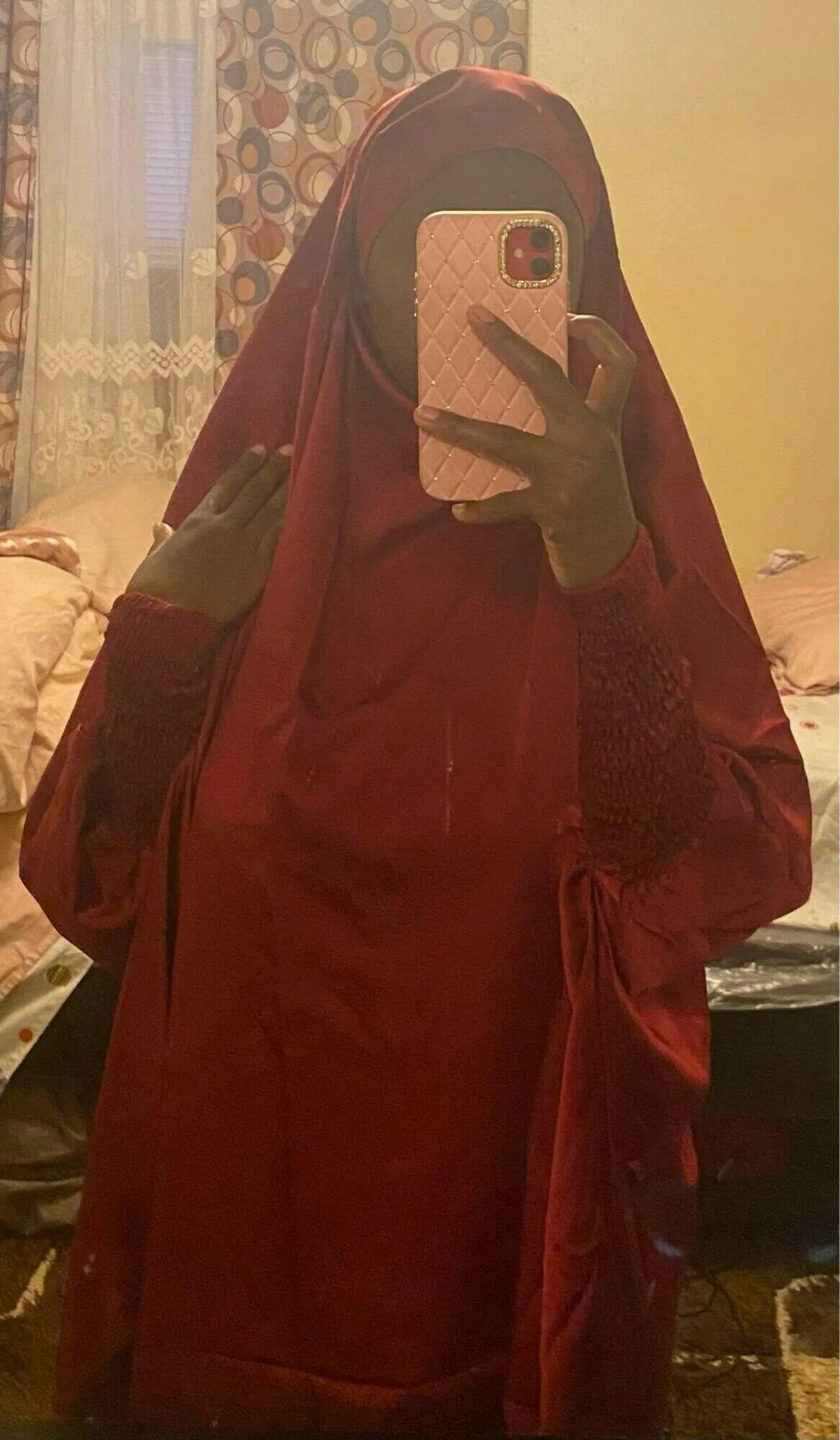 Es ist super süß sieht schön und bequem, obwohl die Länge ist ein wenig kürzer in der Front als die Rückseite, wenn Sie 160cm oder mehr als 160cm messen ich denke, es wird gerade über alle durch die Länge der Rückseite, es kam super schnell und die Farbe ist schön, Sie können es als jilbab und niqab zu verwenden!
